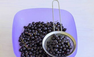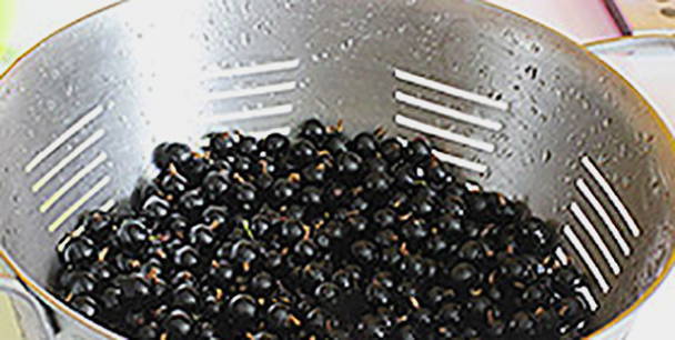 - Sorteer de bessen van het puin, scheur de takken en stengels af, was.