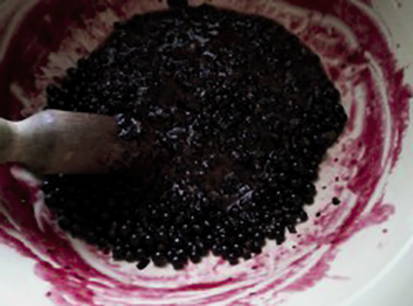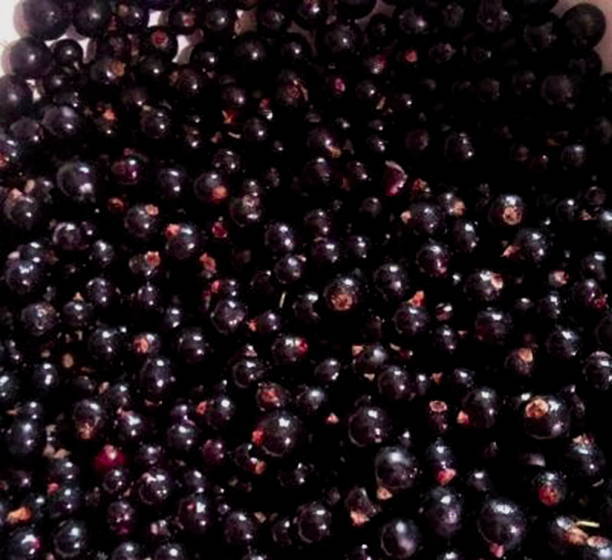 - Sorteer zwarte bessen uit puin, was en droog.