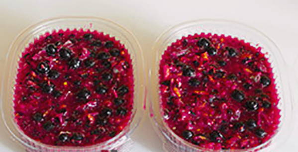 Zwarte bes, geraspt met suiker om in te vriezen