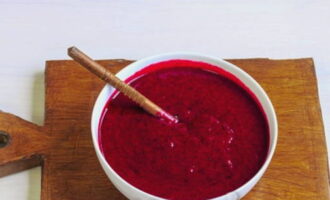 - Voeg vervolgens suiker toe aan de bessenpuree en klop opnieuw.