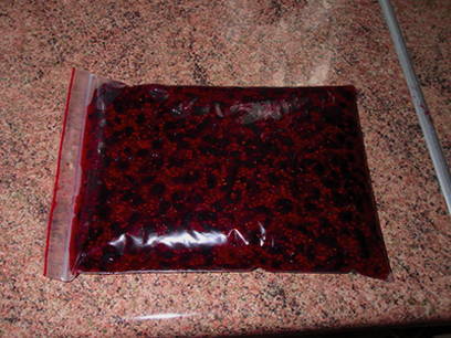 - Zwarte bes, geraspt met suiker om in te vriezen