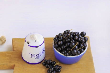 - Zwarte bes, geraspt met suiker om in te vriezen
