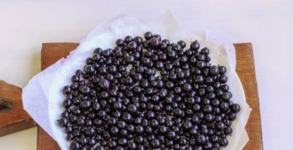 - Sorteer zwarte bessen van twijgen en bladeren, was en droog.