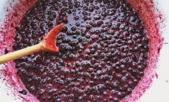 - Dit doen we totdat de blauwe bessen helemaal in hun eigen sap zijn en niet meer krimpen.
