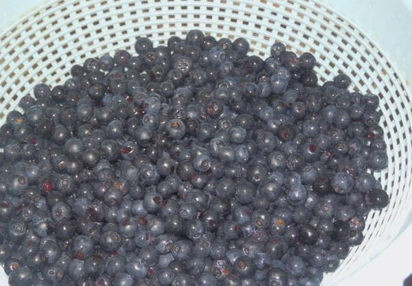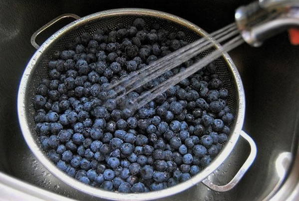 - Allereerst sorteren we de verzamelde blauwe bessen. Daarna spoelen we ze goed af en laten we al het overtollige water weglopen.