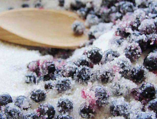Opgerolde bosbessen zonder warmtebehandeling behouden het maximum aan nuttige eigenschappen en vitamines, en zo'n delicatesse in kristalsuiker zal iedereen met een zoetekauw dubbel plezieren.