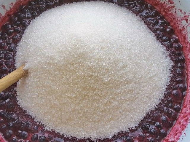- Naarmate het volume van de bessen afneemt, rapporteren we meer. Laat de potten met bosbessen 30-40 minuten zonder deksel op laag vuur sudderen.