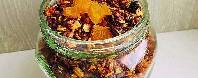 Granola is een traditionele Amerikaanse droge melange voor ontbijt en gezonde snacks. Het bestaat uit havermout en veel heerlijke toevoegingen.