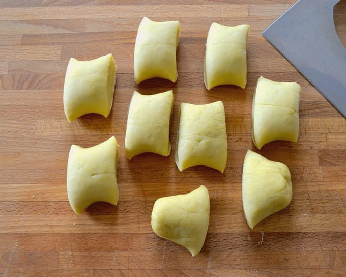 - We keren terug naar het deeg en verdelen het in kleine delen, die we tot ballen kneden.