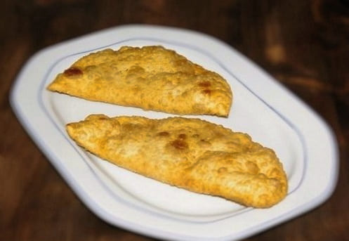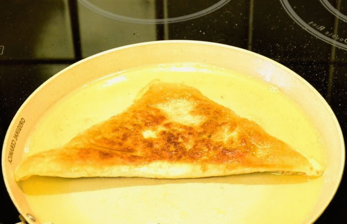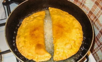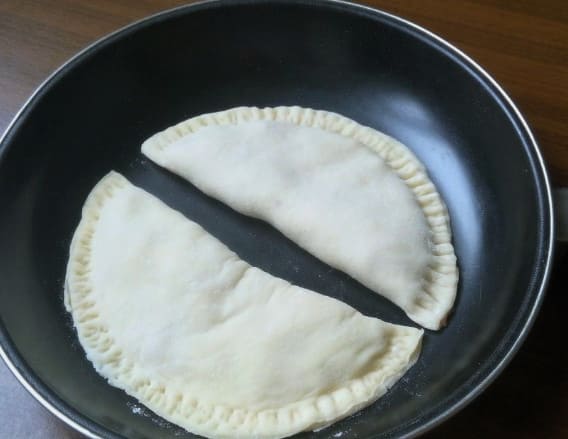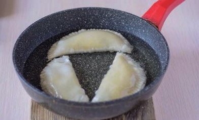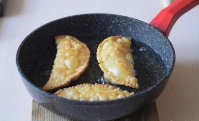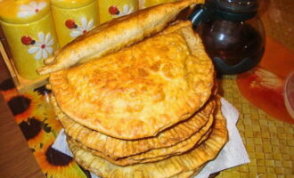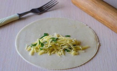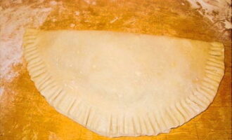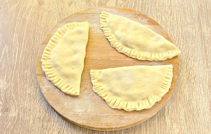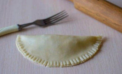 - Vouw het product dubbel en maak de randen vast, zodat een cheburek ontstaat.