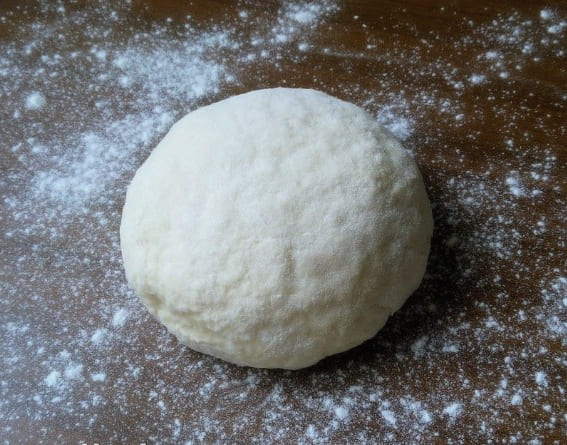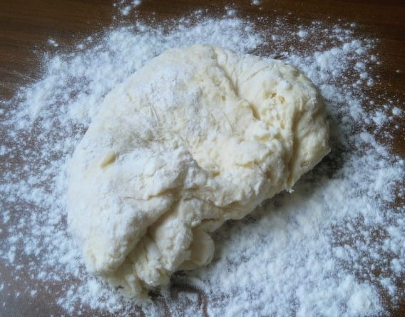 - We kneden het deeg lang met onze handen, totdat er een weelderige en dichte klont uitkomt.