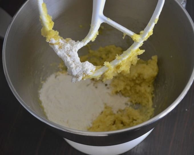 - We beginnen de resterende bloem toe te voegen en de massa te kneden.