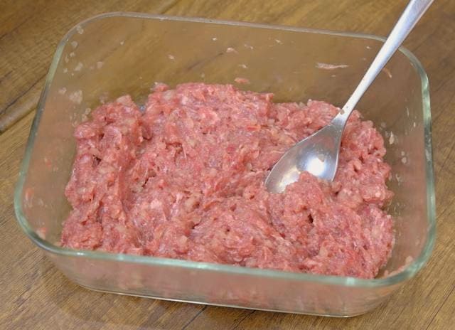 - Leg het bereide gehakt in een apart bord.