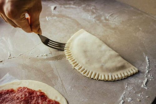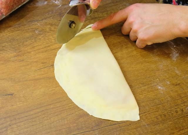 - We vouwen de randen van de pasteitjes en maken ze vast. Voor een gladdere vorm kun je stukjes overtollig deeg afsnijden.