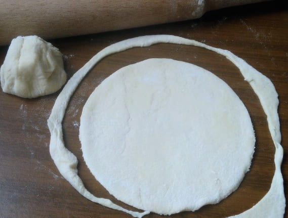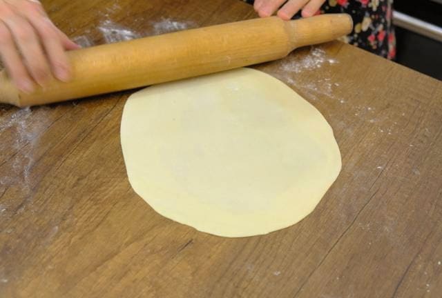 - We keren terug naar het deeg: rol het dun uit met een deegroller en verdeel het in gelijke cirkels. Snijd gemakkelijk met een klein bord.
