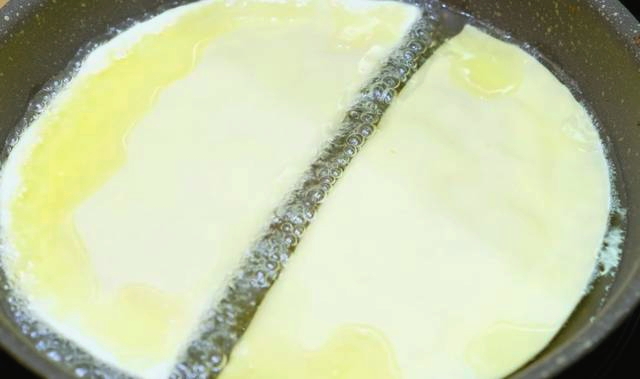 - Verwarm de pan voor en giet er plantaardige olie in. Bak het product aan beide kanten tot een heldere blos.