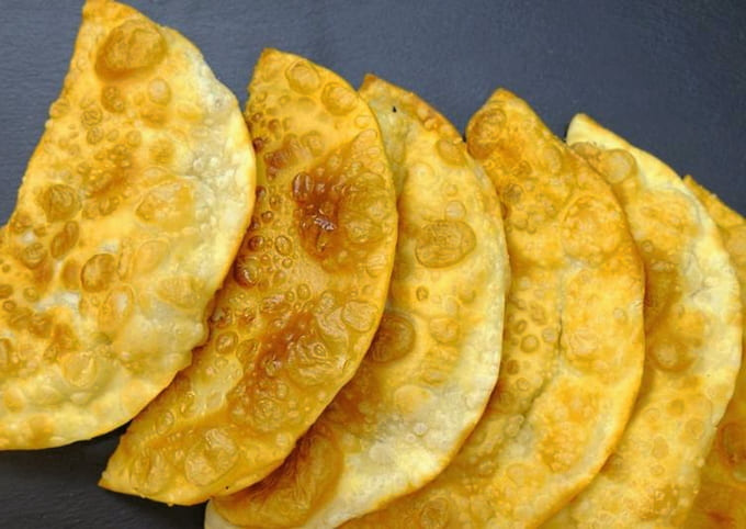 Chebureks met gehakt, thuis gebakken in een pan