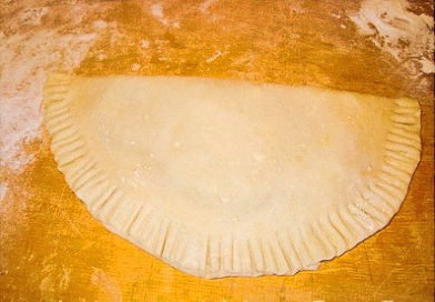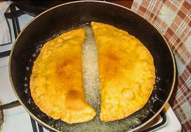 - Vouw het product dubbel en maak de randen vast, zodat een cheburek ontstaat.