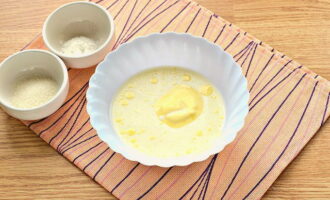 - Klop het ei met zout en melk apart los. Giet later de kant-en-klare gist in dit mengsel. Roeren.