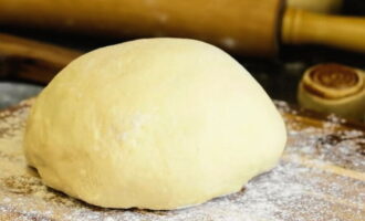 - Giet plantaardige olie in. Kneed tot een homogene zachte bal is verkregen. Bedek het werkstuk met folie en laat het 10 minuten op een warme plaats staan.