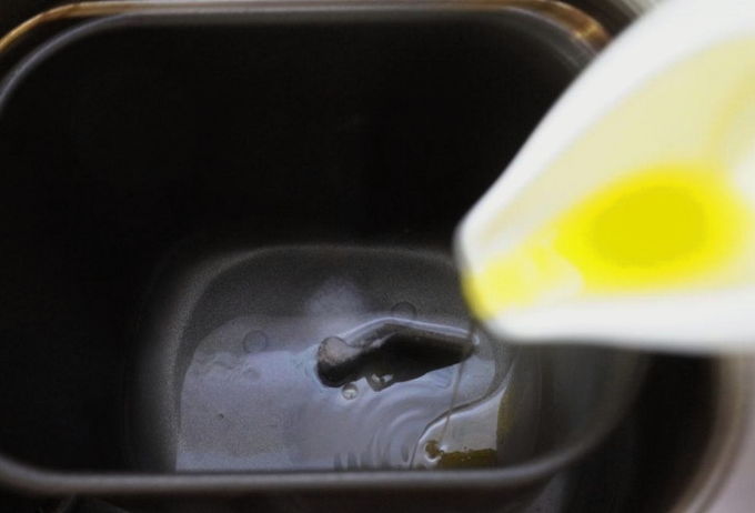 - Giet olijfolie in het water, meng opnieuw.