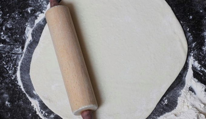 - Na afkoeling is het gistpizza bladerdeeg klaar. Kan worden opgerold met een deegroller.