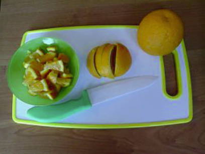 - Snijd de sinaasappels en de schil in blokjes.