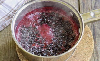- Breng de bosbessenmassa over in een pan, zet in brand, breng aan de kook en kook 5 minuten.