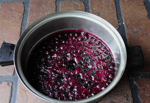 - Doe de bessen en het sap in een pan, zet in brand en breng aan de kook.