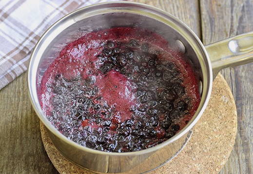 - Kook de bessen op siroop, onder voortdurend roeren. Wanneer schuim begint te verschijnen, schep het dan weg met een lepel.