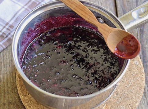 - Doe de bessen en het sap in een pan, zet in brand en breng aan de kook.