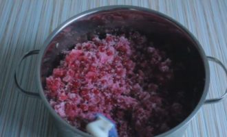 - Hak de voorbereide bessen met een keukenmachine of draai ze in een vleesmolen.