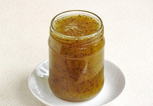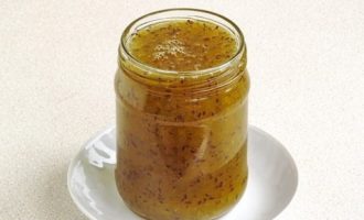 - Steriliseer de potten van het door u gekozen volume, kook de deksels gedurende 3 minuten. Doe de jam in potten en sluit af. Bewaar op een koele plaats.