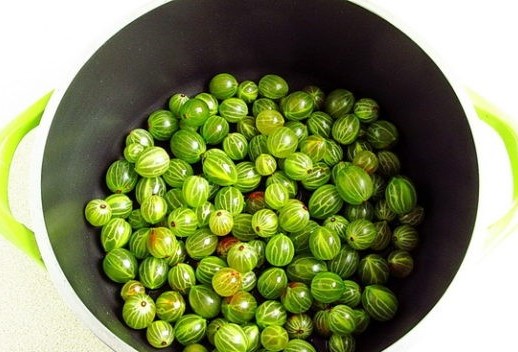 - Bereid rijpe kruisbessen voor om jam te koken: was ze, verwijder droge elementen aan de bovenkant en groene stengels. Het is handig om deze handeling uit te voeren met een scherpe kleine schaar of een mes.