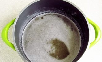 - Meng suiker met water en kook de siroop, breng de oplossing aan de kook en zorg ervoor dat de kristallen oplossen.