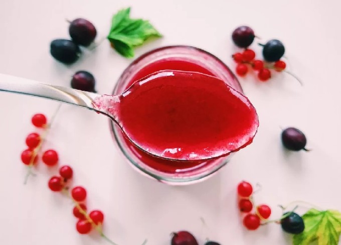 Rode kruisbessen produceren een prachtige robijnkleurige jam. Het wordt in een zeer korte fase gebrouwen, waardoor het een maximum aan vitamines behoudt.
