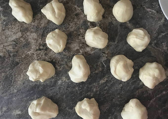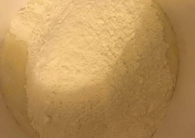 - Meng de licht opgewarmde melk met het ei, voeg bloem toe en kneed het deeg. Laat het een paar uur staan om te rijzen.