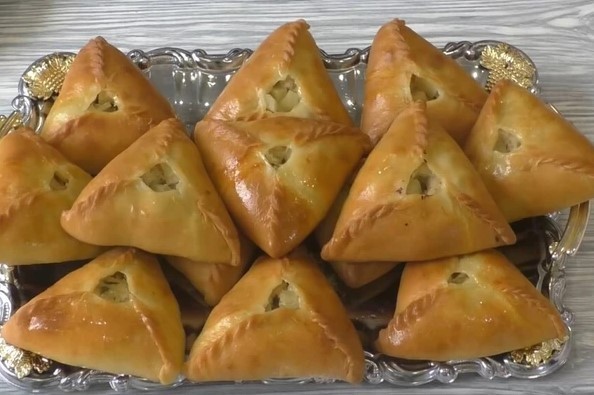 - Echpochmak in Tataarse stijl op gistvrij deeg