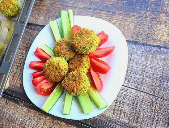 - Leg de afgewerkte falafel op een bord. Serveer met verse groenten of een bijgerecht naar smaak. Klaar!