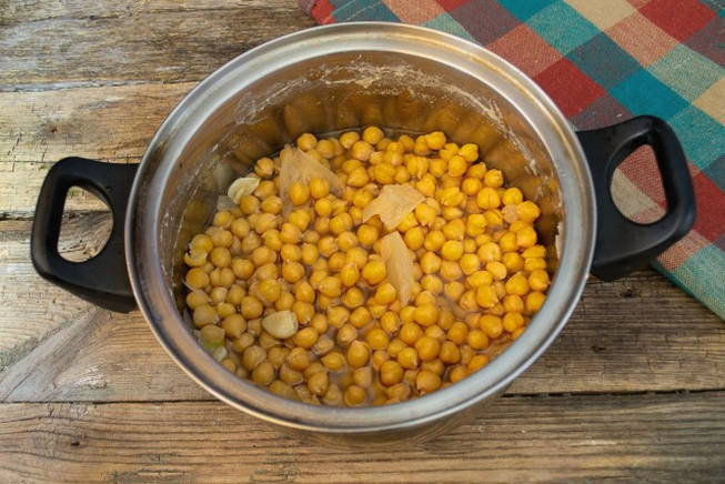 - Week de kikkererwten van tevoren tot ze opzwellen.
