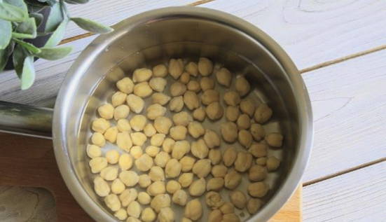 Week de kikkererwten enkele uren of een nacht in koud water.