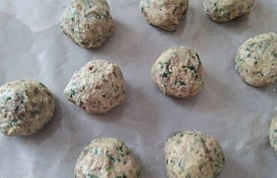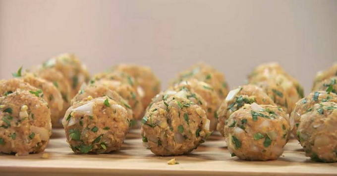 - We boetseren kleine balletjes van het afgewerkte gehakt.