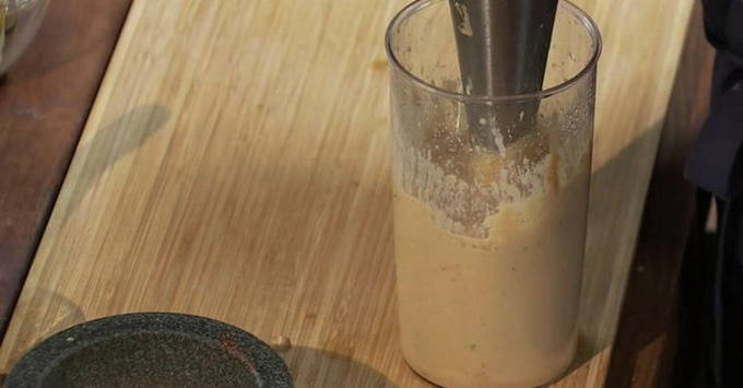 - Maal de ingrediënten tot een homogene fijne pap is verkregen.