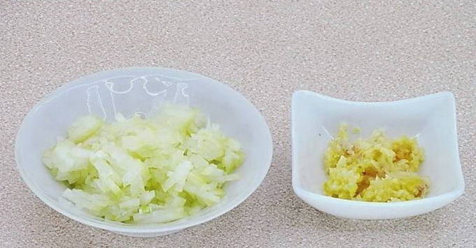 - Snijd de uien en knoflookteentjes op een gemakkelijke manier.