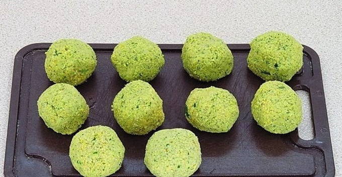 - Van het resulterende deeg maken we kleine balletjes van gelijke grootte. We bakken ze tot ze blozen in een grote hoeveelheid kokende olie.