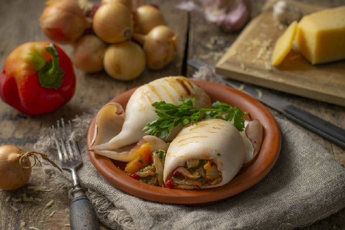 Groenten passen goed bij inktvisvlees. De vulling zal sappig zijn en de inktvis zelf zal erg mals blijken te zijn.