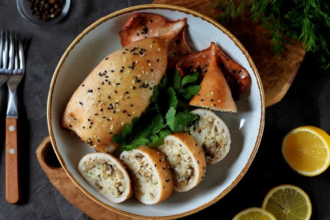 - Heerlijke inktvis gevuld met champignons in de oven
