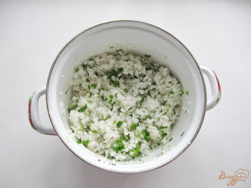 De vulling koken. Rijst moet worden gekookt in gezouten water en afgespoeld zodat het kruimelig is. Hak de greens fijn (peterselie of dille naar smaak), meng met rijst. Breek een ei in rijst, voeg kruiden toe en meng. De vulling is klaar. Verdun voor de saus de zure room met water 2 op 1, voeg kruiden naar smaak toe.