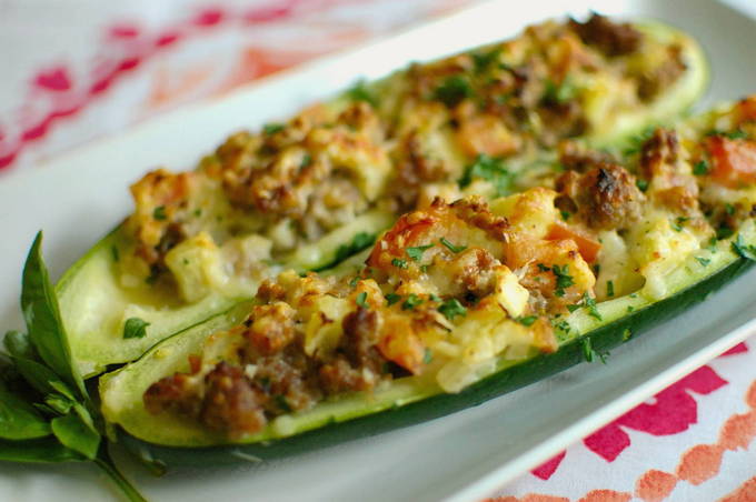 Courgettebootjes met gehakt, gebakken in de oven