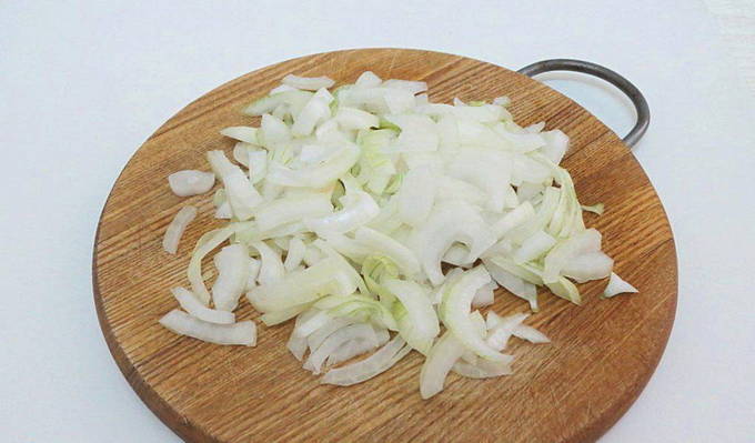- Pel de uien en hak ze ook fijn. We wassen de kool goed onder stromend water, drogen hem en demonteren hem in bloeiwijzen.